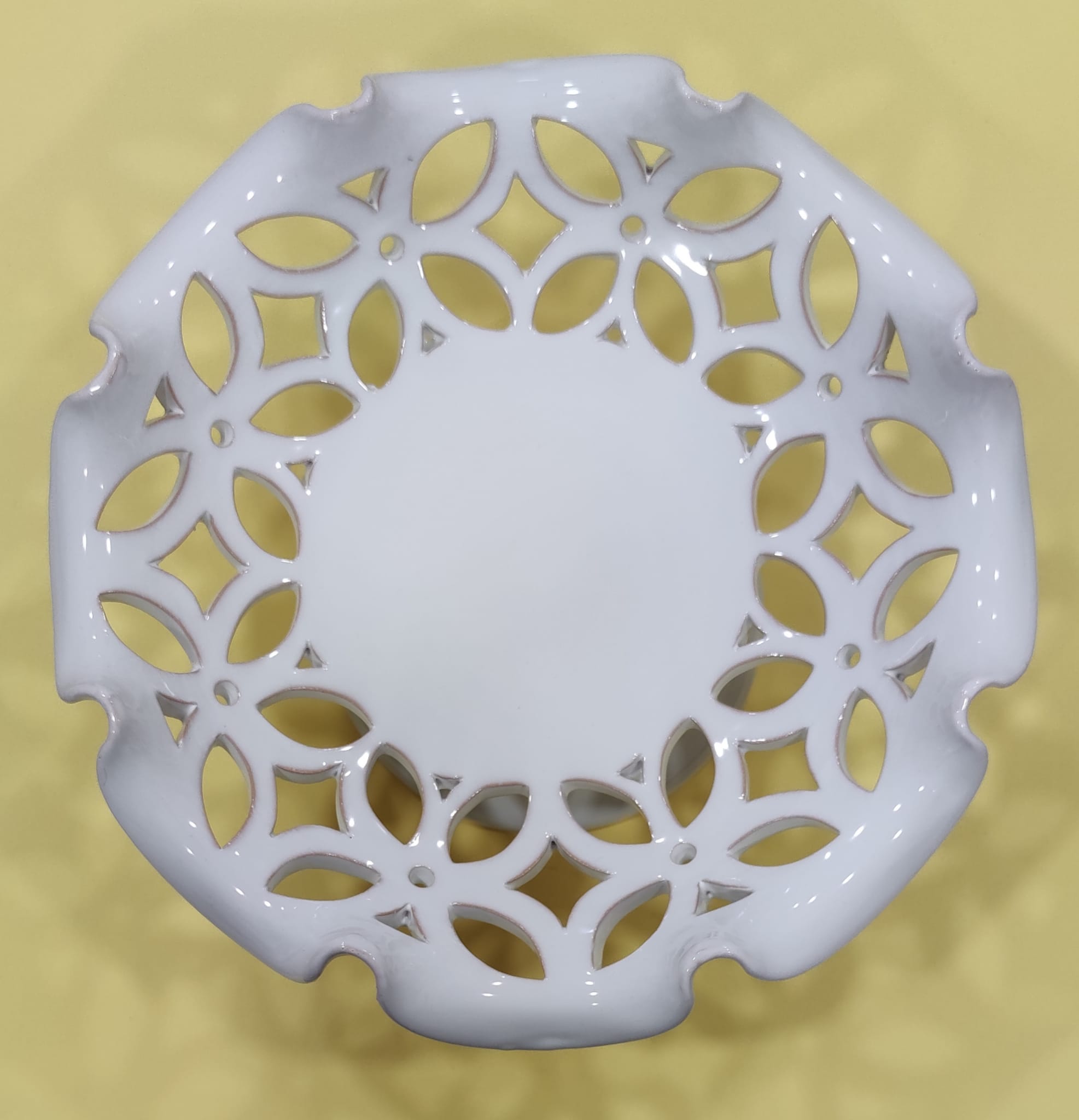 Alzatina traforata 28 cm di diametro e 15 cm di altezza smaltata bianca