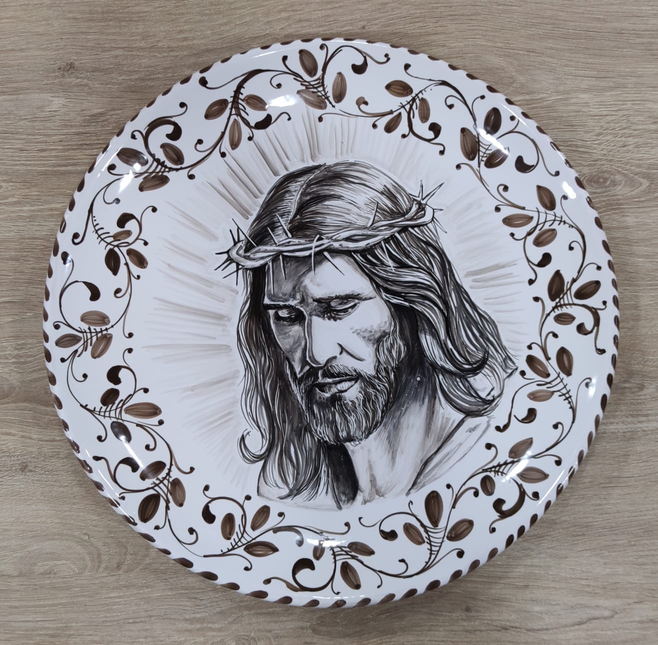 Piatto da muro 40 cm di diametro, raffigurante volto di Gesù Cristo
