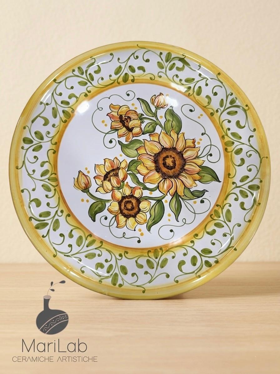 Piatto da portata tondo, diametro 34 cm. Decoro Girasoli.